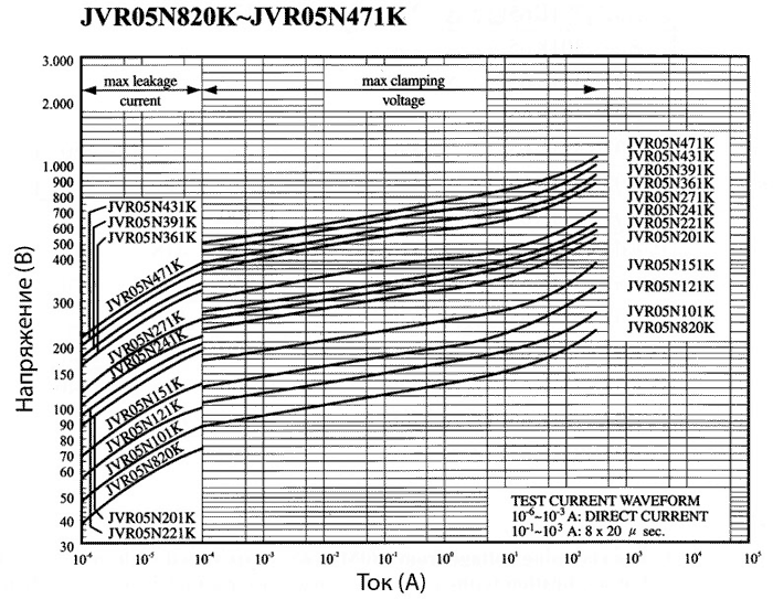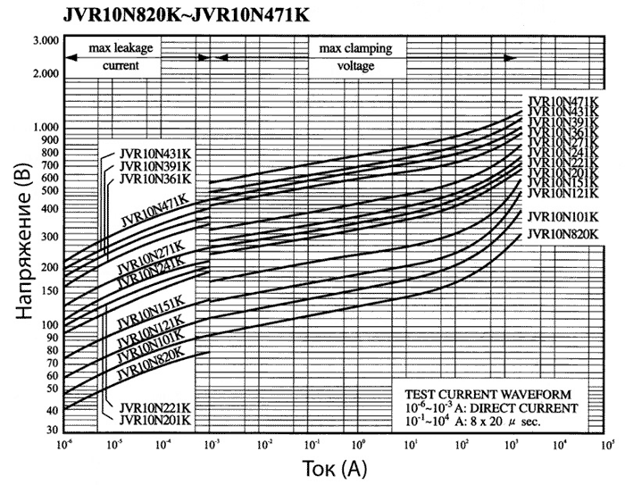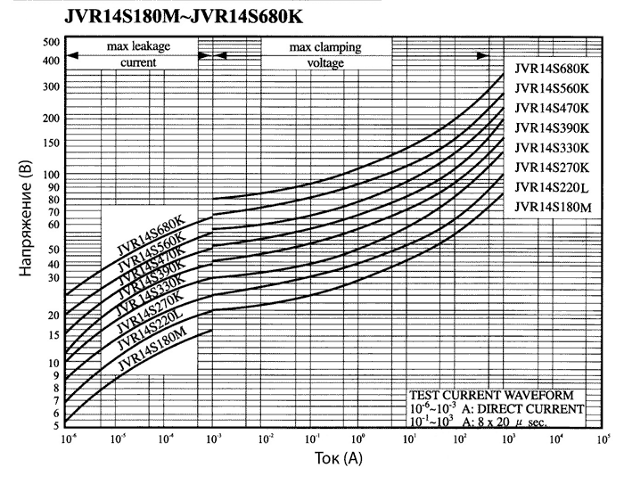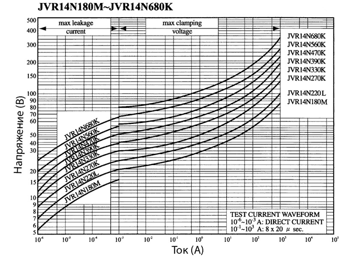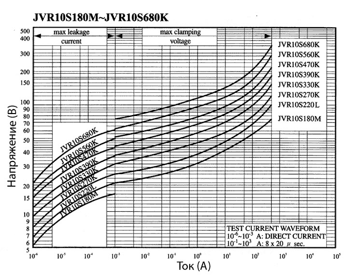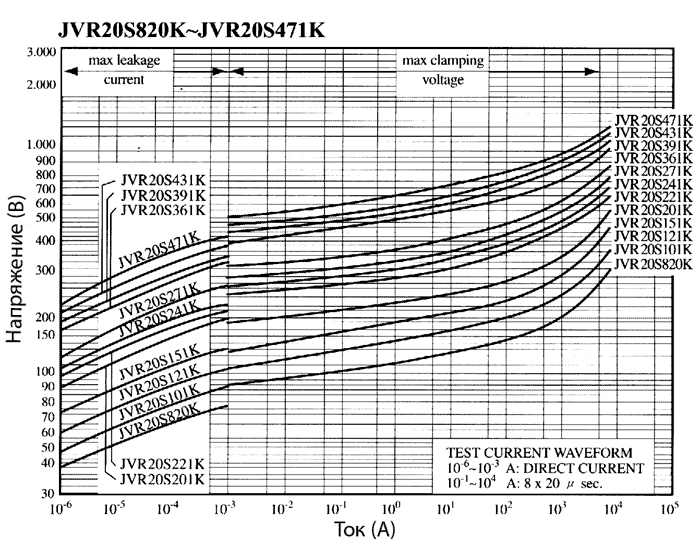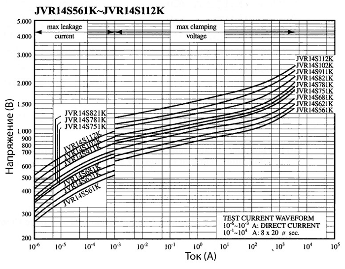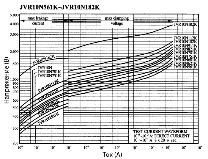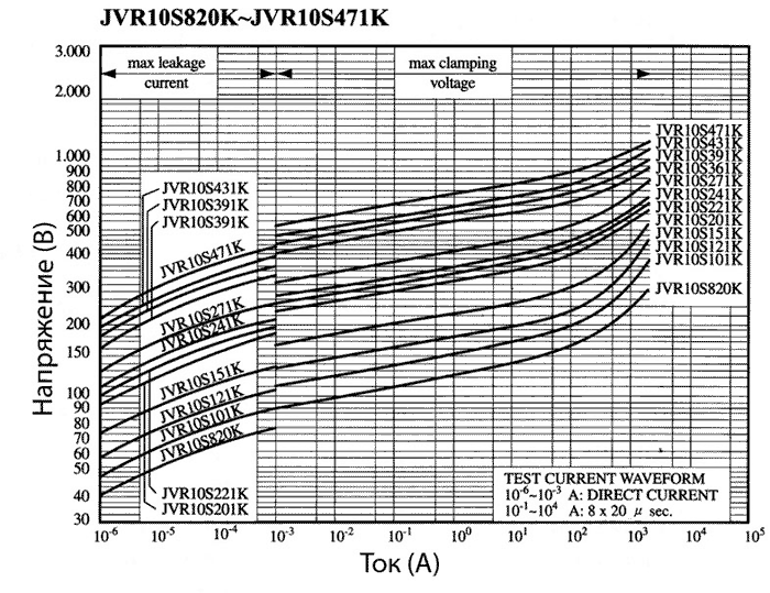 Вольт-амперные характеристики варисторов JVR