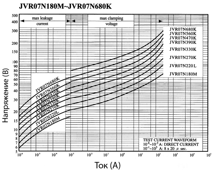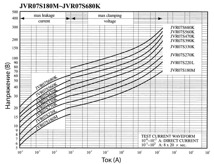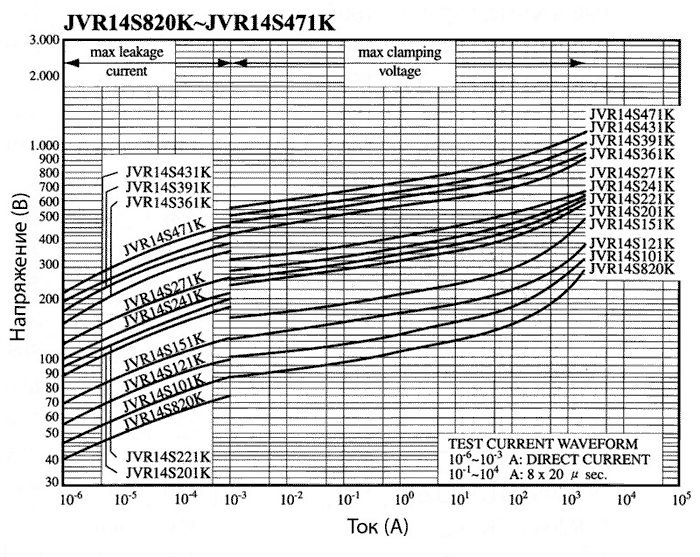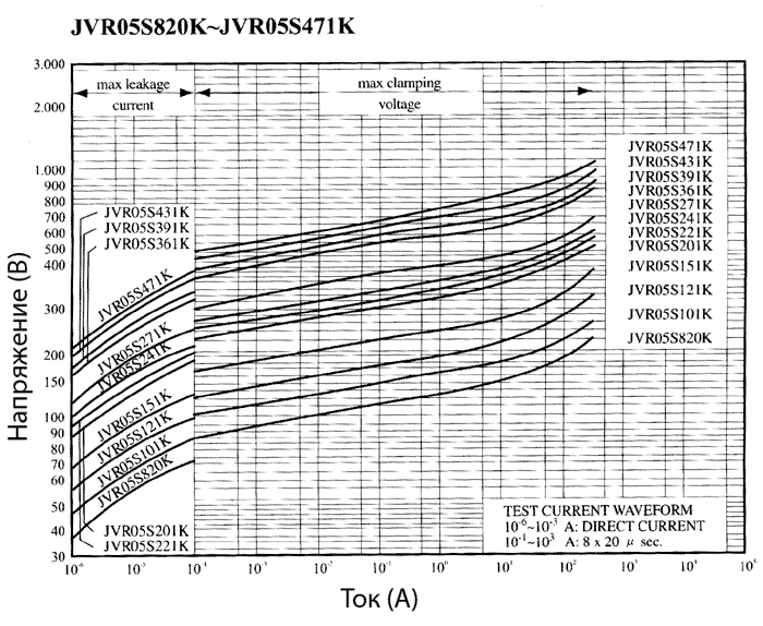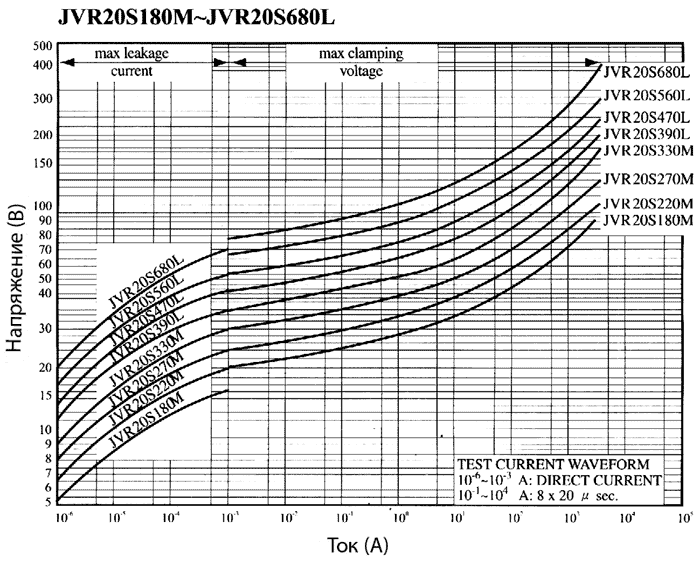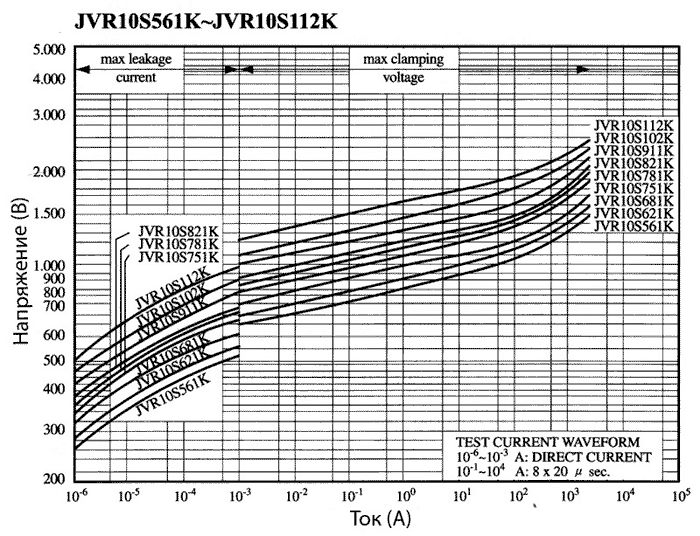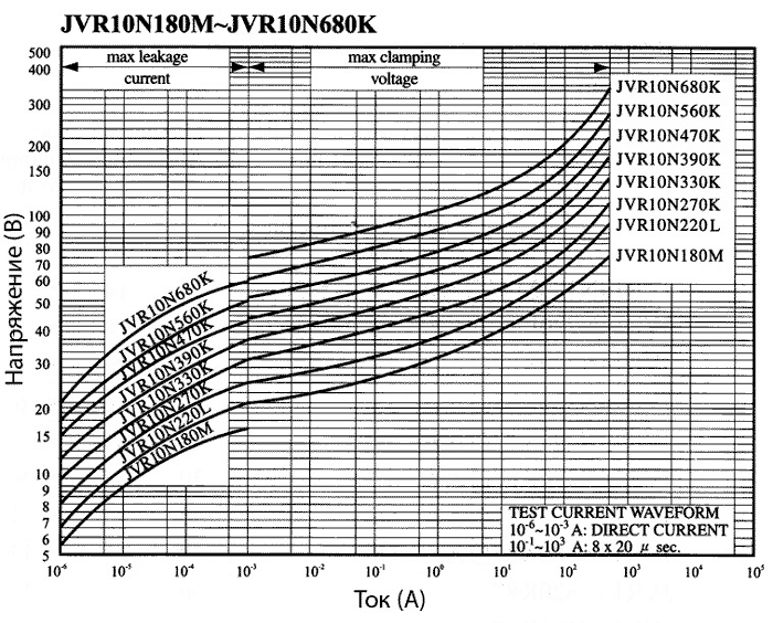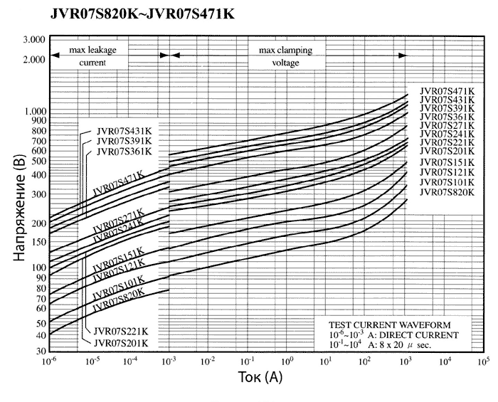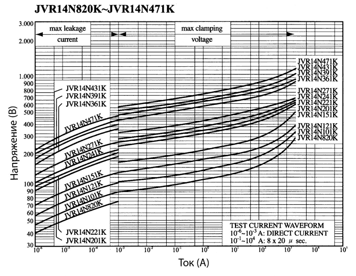 Вольт-амперные характеристики варисторов JVR