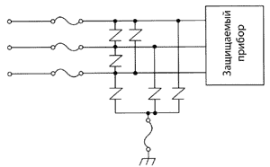Выбор напряжения варистора в трехфазных схемах