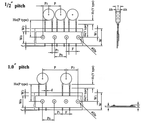 RW - на ленте в катушке (H0 : 16мм) формованные выводы